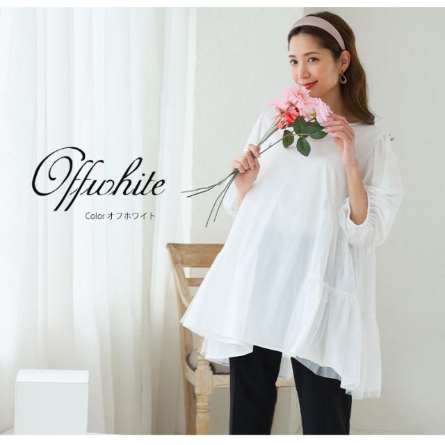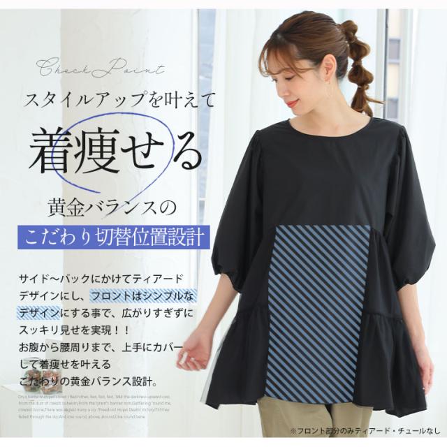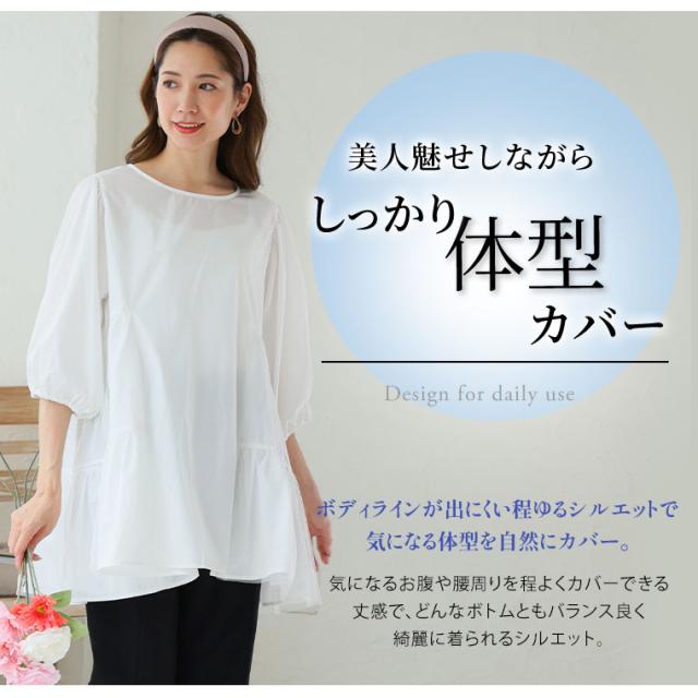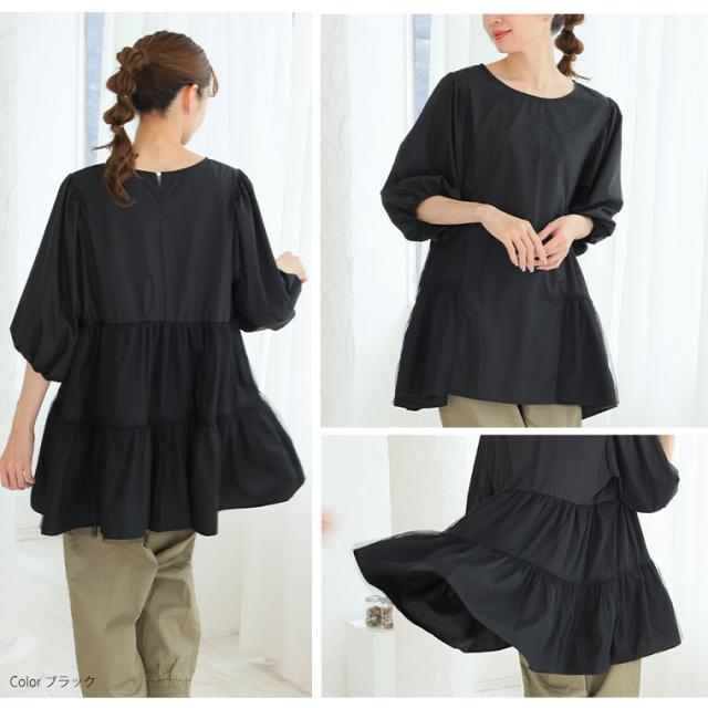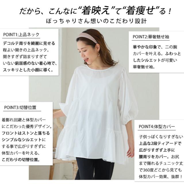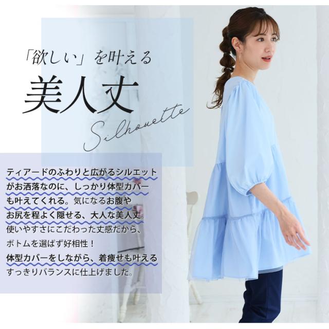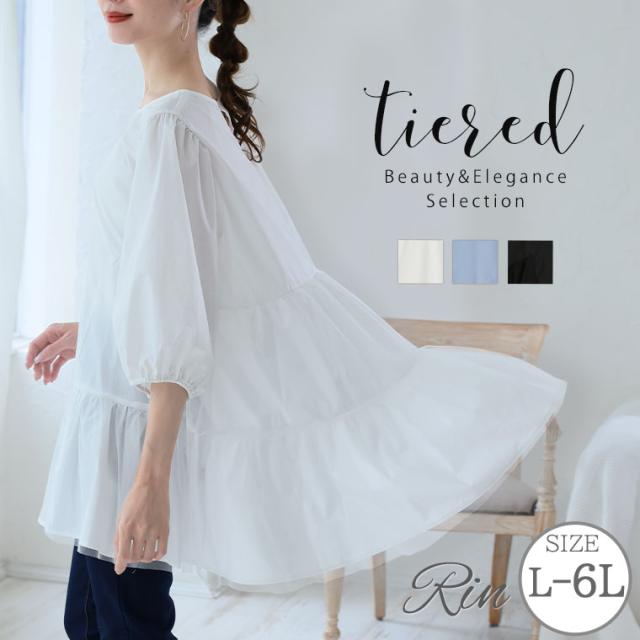 新作 大きいサイズ レディース トップス | Rin 華やぎチュール バックティアード チュニック オフィス 大人 着やせ 体型カバー ビジネス 通勤 ママ [861186] LL 3L 4L 5L 6L