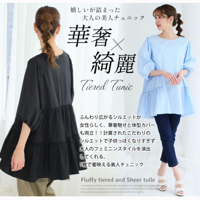 Rin ふんわり大人の可愛さ 華やぎチュール バックティアード チュニック