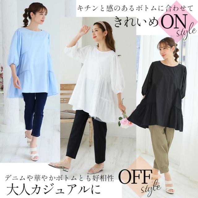 ■着用感:ちょうどいい、■着丈:お尻すっぽり、■バスト:ちょうどいい、■腕回り:ちょうどいい、■袖口:ちょうどいい、■袖丈:肘下、■首回り:ちょうどいい、■ウエスト:-、■ヒップ:-、■太もも:- ●可愛いデザインでお腹周りを上手に隠してくれて気に入りました。ダボっと見えずゆったり着られるのに着心地も楽ちんです。