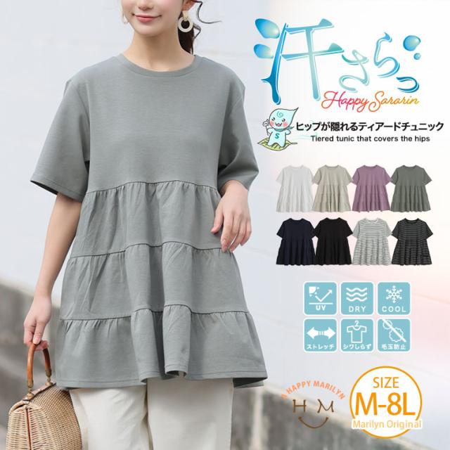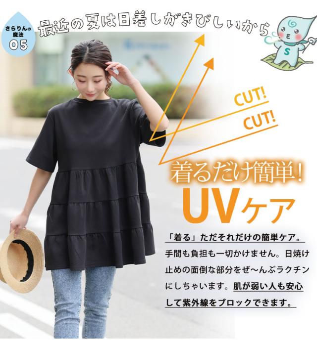 ヒップが隠れる ゆったり触冷感ティアードチュニック
