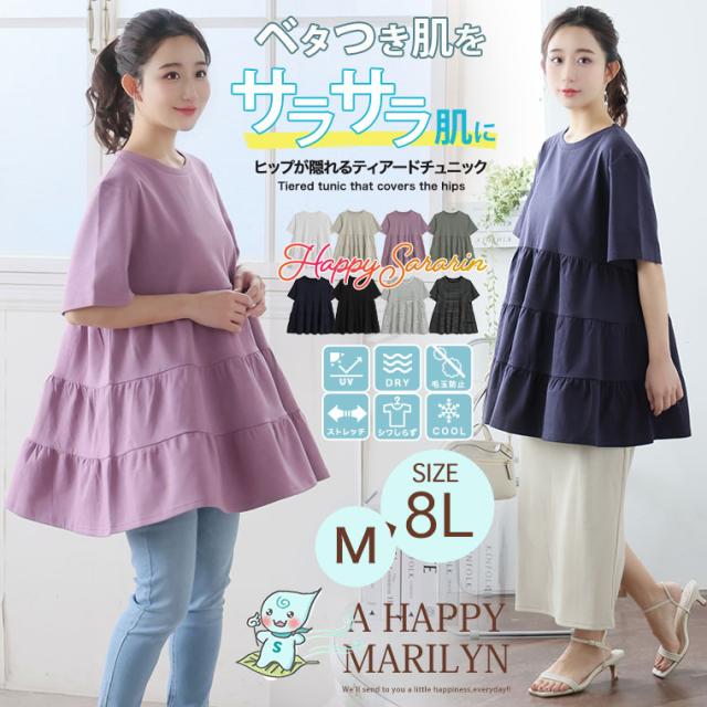 新作 大きいサイズ レディース チュニック | リニューアル!! 【ハッピーさらりん】 ヒップが隠れる ティアード チュニック [491057] LL 3L 4L 5L 6L 7L 8L