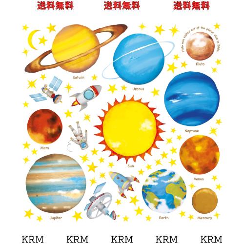 DECOWALL DS-8007 宇宙と惑星 (小) ウォール ステッカー デコ 幼稚園 保育園 子供部屋 DIY 用 壁転写 シール ウォールアート シール 男の