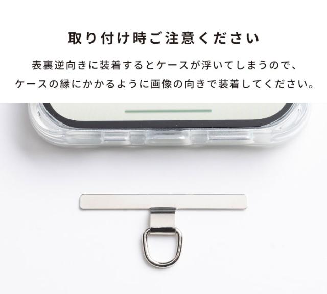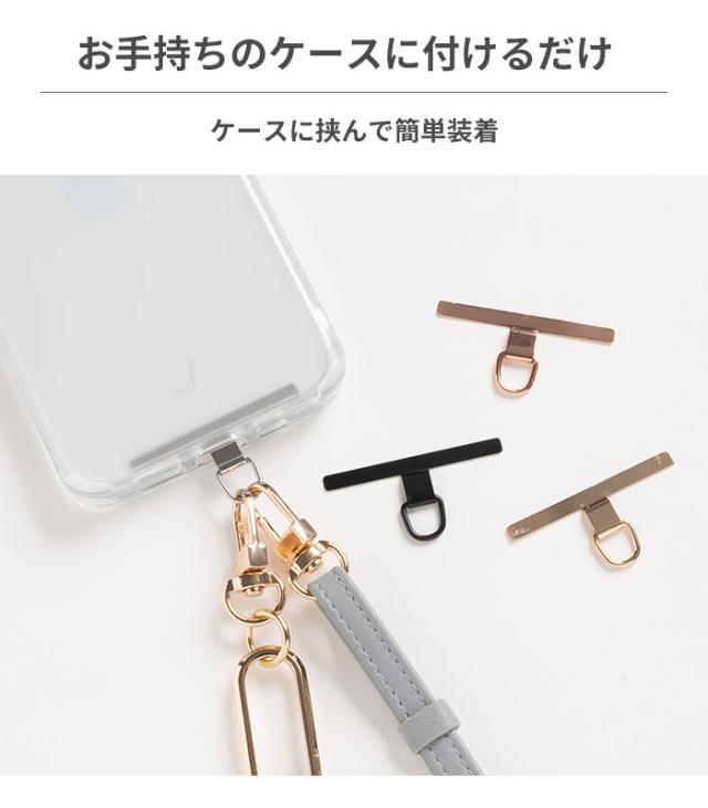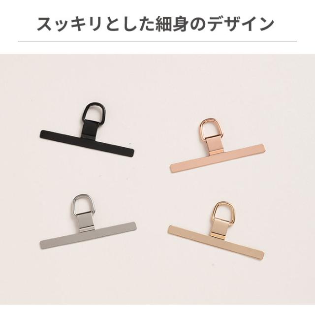 お手持ちのスマホケースに挟むだけで、簡単にショルダーストラップ等が付けられるメタリックストラップホルダー。