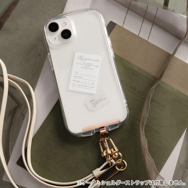 背面がクリアタイプのケースなら、少し見えるストラップホルダーがスマートでオシャレな印象に。