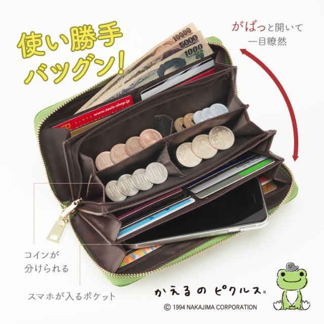 かえるのピクルス スマホも入る長財布 財布 スマホ 正規品 │ 送料無料 かえる カエル ピクルス pickles the frog グッズ スマホ入れ カード大容量 正規ライセンス品