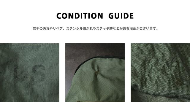 | 商品状態 | 軍放出USED品のリメイク ※USED品を使用したリメイクの為、1点1点色合いの違いや、パーツごとに色合いの個体差があり、若干の汚れやリペア、ステンシル剥がれやステッチ跡などがある場合がございます。USステンシルがない場合もございます。商品状態についてご指定いただくことは出来ません。予めご了承下さい。 |