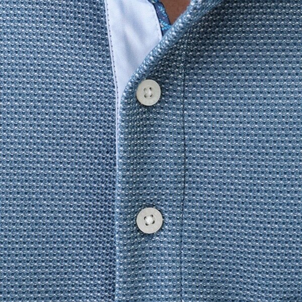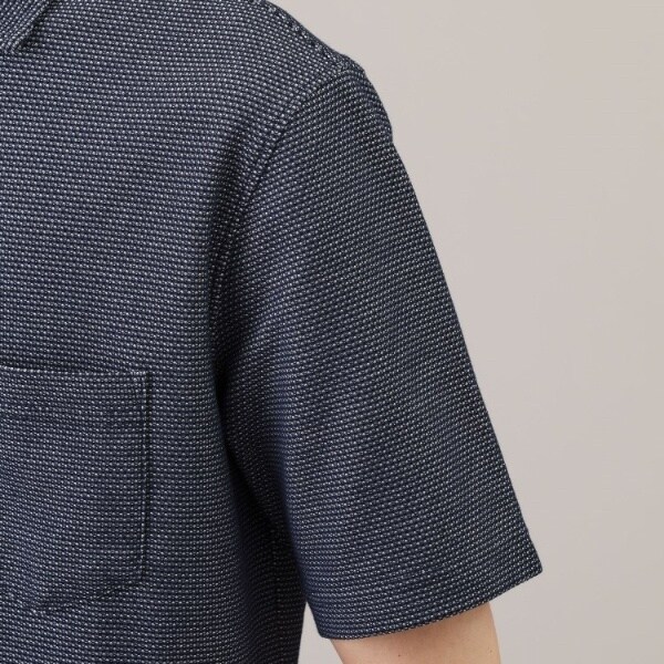 生地にもこだわり、汗を素早く吸い、早く乾く、吸汗速乾機能と爽やかな肌触りと生地の凹凸感が特徴である細かなハニカム構造と、奥行きのあるメランジ調の表情が合わさり軽やかさと清涼感を演出します。