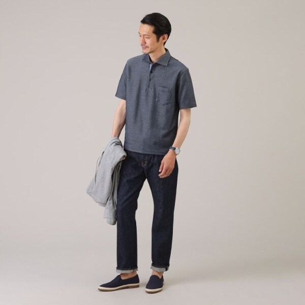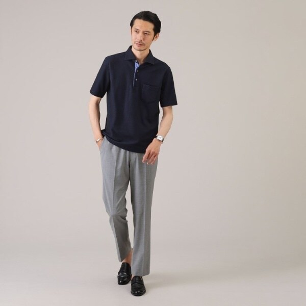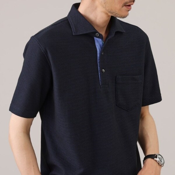 立体感のある上品な衿のロール、吸汗速乾性に富んだ着心地の良いメランジハニカム素材、抗菌防臭効果の高いポリジン加工といった嬉しいこだわりが満載。