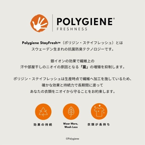 菌の繁殖をおさえ、臭いを防ぐスウェーデン生まれの抗菌防臭のリーディングブランド『ポリジン(R)』の効果により臭いの発生を抑制します。