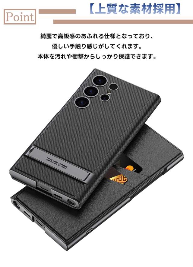 Galaxy S24 ultra 5G用 ケース カード収納カバー 手触り良き 耐衝撃 ビジネス Qi充電対応 バンパー ワイヤレス充電 Samsung Galaxy S24 ultra 5Gケース ギャラクシー S24 ウルトラ スマホケース 極薄型 軽量 PC 耐衝撃 カメラ保護 衝撃防止 精密にアクセス 炭素繊維調