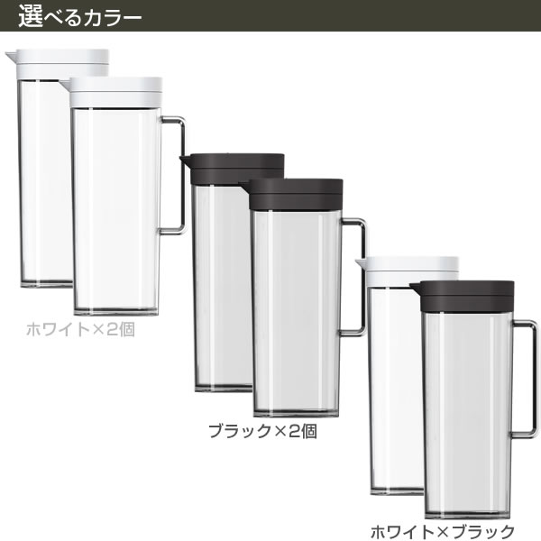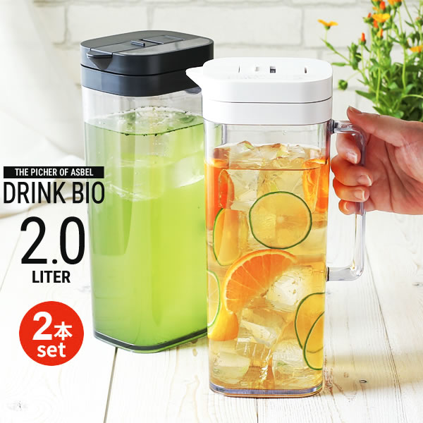 麦茶ポット ドリンク・ビオ SP-200 2L カラーが選べる2本セット ホワイト/ブラック | おしゃれ スリム 横置き 冷水筒 シンプル 麦茶入れ ピッチャー ジャグ 水差し 2L 2リットル タテヨコ置ける 取っ手付き ドアポケットOK