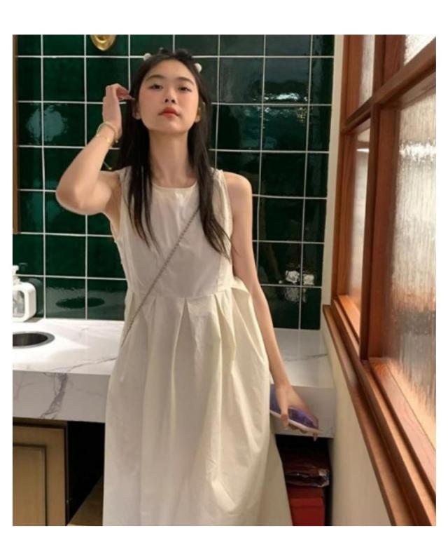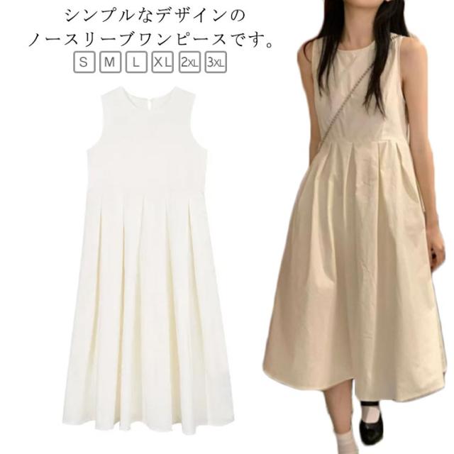 ワンピース 白ワンピース レディース 膝下丈ワンピース 無地 シンプル 袖なし 夏用 おしゃれ カジュアル ノースリーブ 体型カバー ミモレ丈 着?せ Aライン きれいめ かわいい お出かけ リゾートワンピース 旅行 ビーチ リゾート ホワイト パーティー 送料無料