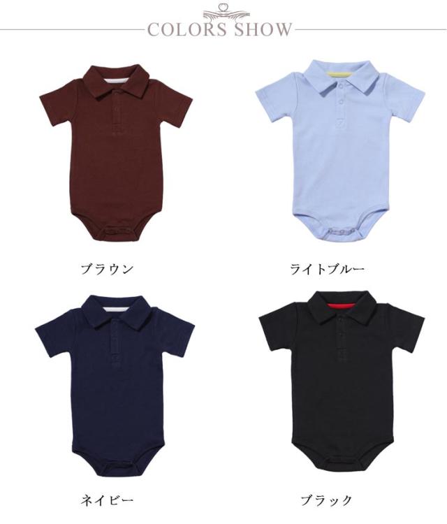 ロンパース 春夏 ベビー キッズ 無地 シンプル ポロ 男の子 ポロシャツ 送料無料 ブラウン ライトブルー ネイビー ブラック ホワイト イエロー レッド グレー ピンク ローズピンク オレンジ