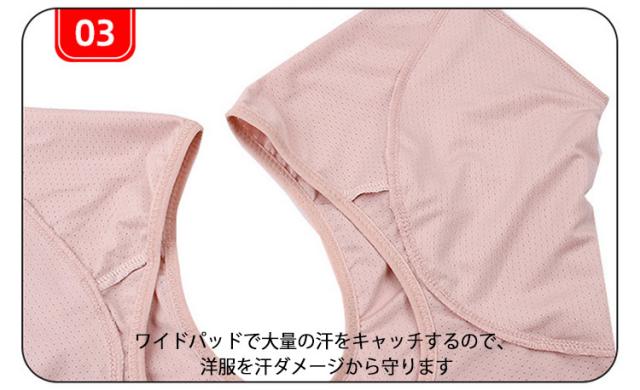| 【汗脇パッド付き】【汗取りインナー】【メッシュ生地】 インナーに着るだけで簡単・快適に汗染み対策が出来ます。 ワイドパッドで大量の汗をキャッチするので、洋服を汗ダメージから守ります。 しっかり脇にフィットして、とてもよく身体にフィットして、快適に着用できます。 首回りが大きく開いたデザインや、背中・胸元が開いた服でも安心! 薄い生地なので洋服でもラインが響かず伸縮性抜群の素材なので着膨れの心配もなし。 汗取りインナーを着けて、快適な着心地で汗じみもう気にならない! | |