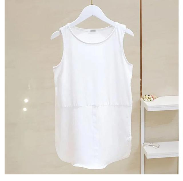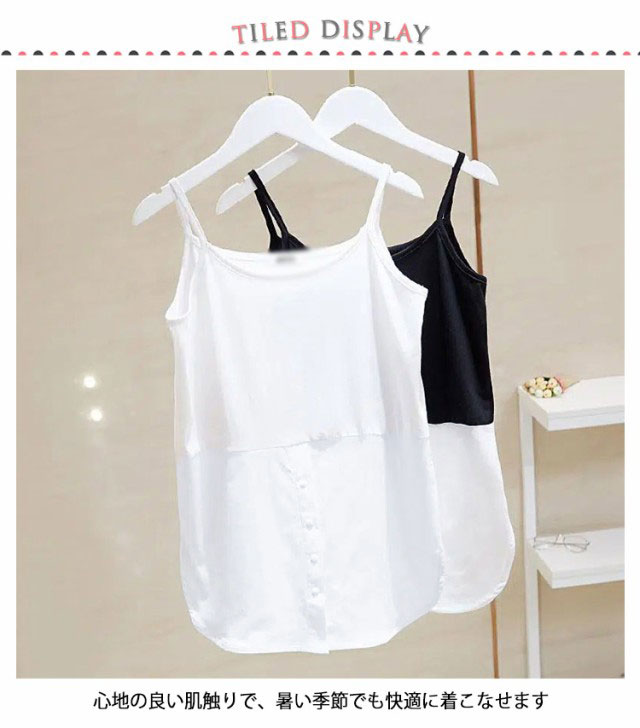 レイヤード タンクトップ レディース ロング丈 キャミソール 重ね着 インナー ロングタンク ストライプ シャツ ラウンドヘム キャミタンク 体型カバー お洒落 付け裾 夏新作 送料無料
