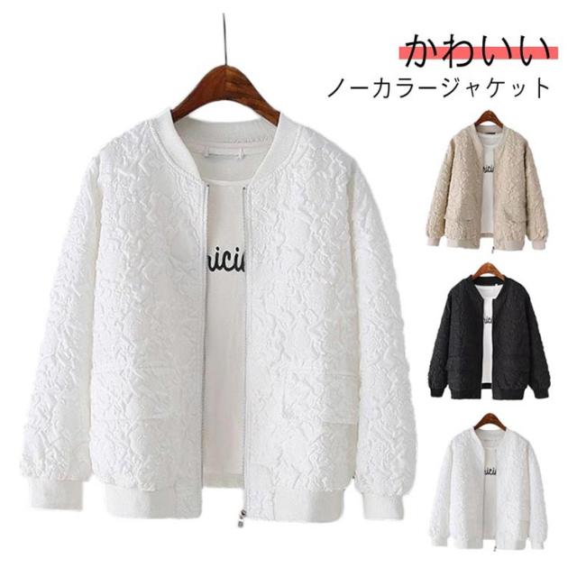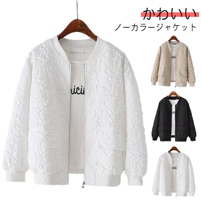 ノーカラージャケット ブルゾン レディース 長袖 春 アウター ノーカラー ジャケット ショート ライトアウター 羽織り 春服 通勤 韓国 ノーカラージャケット