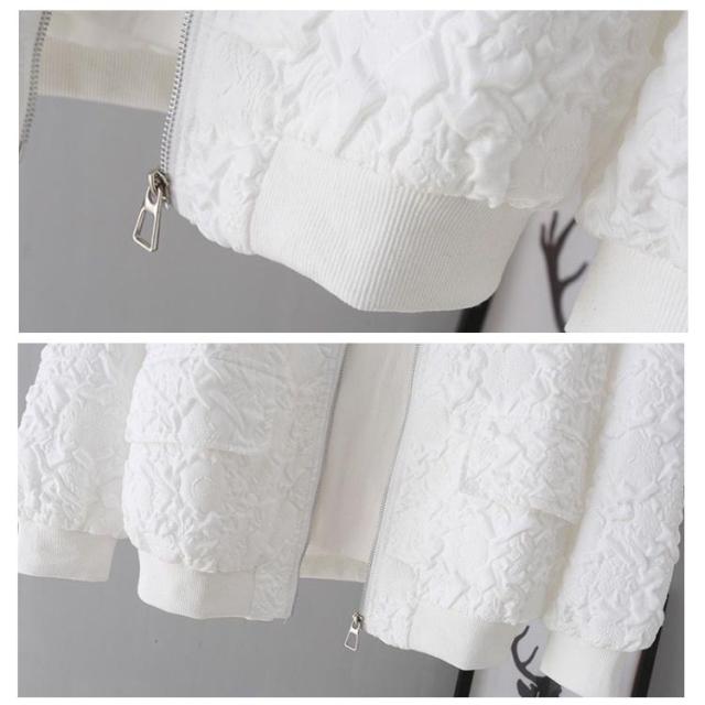 | フロントジップは開閉して機能的に着用でき、シンプルなデザインのアクセントにもなっています。 首元は優しいラウンドネックになったトップスは、首周りをキレイに魅せます。 合わせやすい絶妙な着丈で、パンツスタイルと合わせるのが一番ですが、スカートなどあらゆるボトムスとの相性も良いです。 幅広いシーンで着用いただける万能ジャケットです。 | |