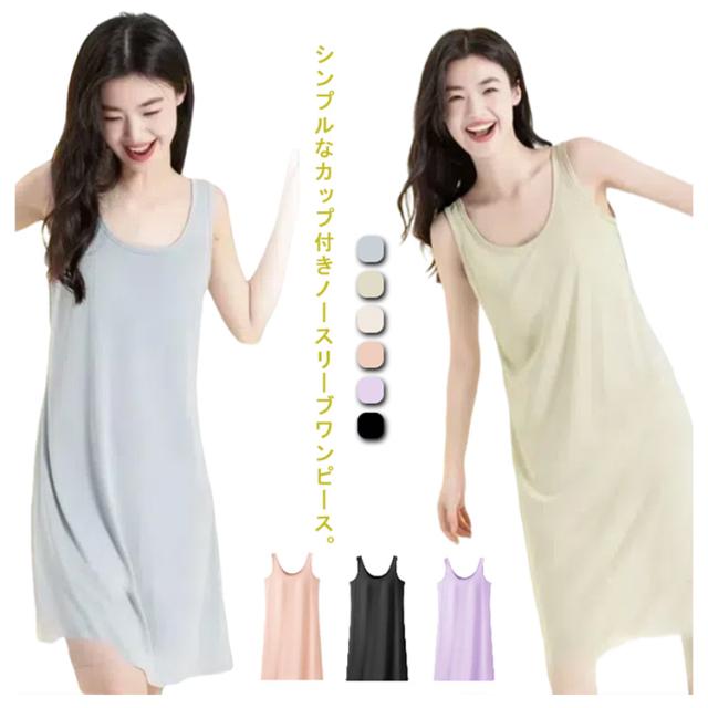 カップ付き ワンピース ノースリーブ パジャマ ワンピース カップ付き スリップ 透け防止 インナー キャミソール ペチワンピ 部屋着 ロング丈 ルームウェア 春 夏 年中使える 涼しい インナー ゆったり 寝巻き ナイトウェア 無地 シンプル おしゃれ