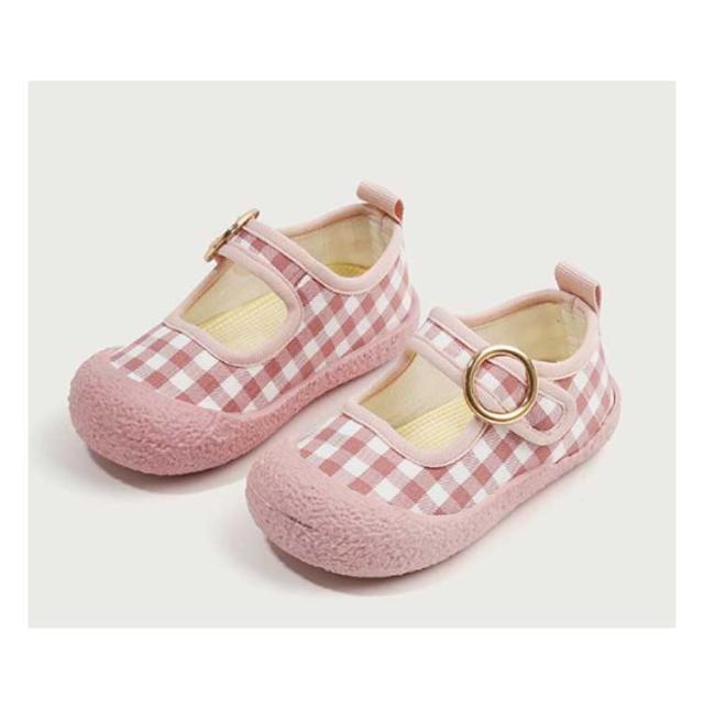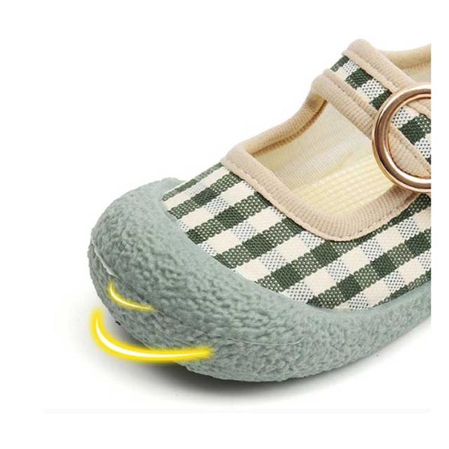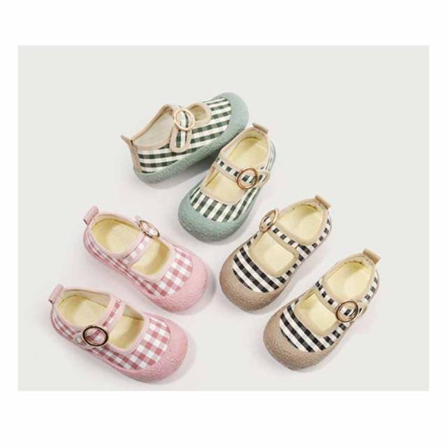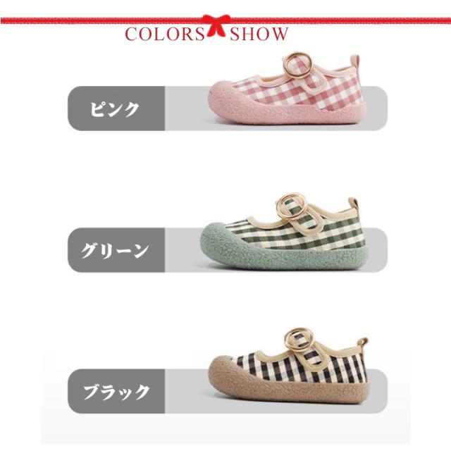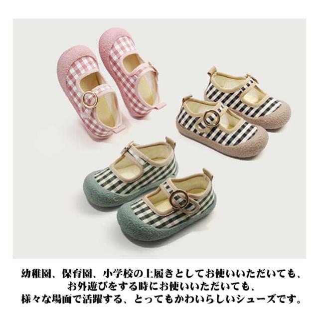 | 可愛いチェック柄の子供用上履き。 ソールの返りもよく、歩きやすさバツグン。 マジックテープ仕様のワンストラップで、脱ぎ履きしやすいのも魅力です。 幼稚園、保育園、小学校の上履きとしてお使いいただいても、お外遊びをする時にお使いいただいても、様々な場面で活躍する、とってもかわいらしいシューズです。 | |