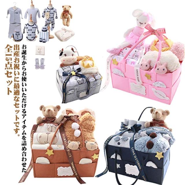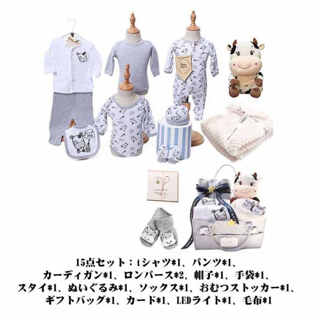 出産祝い ギフトセット 15点セット 新生児セット 男の子 女の子 ロンパース カーディガン スタイ ぬいぐるみ 毛布 おむつストッカー 靴下 コットン 綿 くま うさぎ 牛 赤ちゃん 贈り物セット 入院 退院 可愛い 妊娠 お祝い プレゼント0ヶ月 3ヶ月 6ヶ月 9ヶ月 通年 送料無料