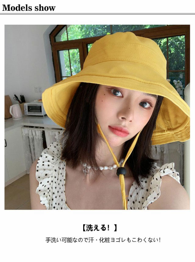 | 【洗える!】 手洗い可能なので汗・化粧ヨゴレもこわくない! 【あごひも付き!】 あごひも付きで風の強い日も安心!! 【サイズ調整出来ます!】 内側後方部分にはサイズ調整テープがついており、風の強い日やサイズが決まらない時に便利です! 【小顔効果・スッピン隠しにも!】 つばが広く顔周りをカバー出来、 視覚的に小顔に見え、急なお出かけ時のスッピン隠しにも最適なアイテムです! | |