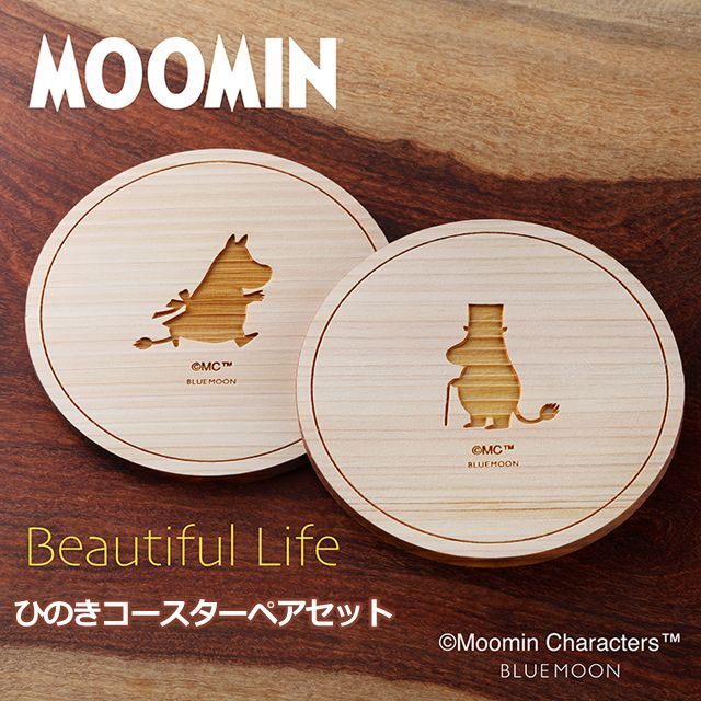 ムーミン「ひのきコースターペアセット」 (2種セット 2枚セット リボン付き 専用Box 贈り物 プレゼント ギフト)