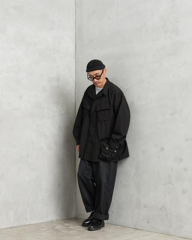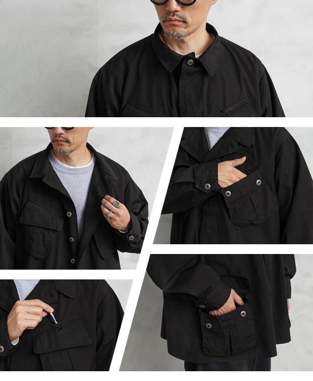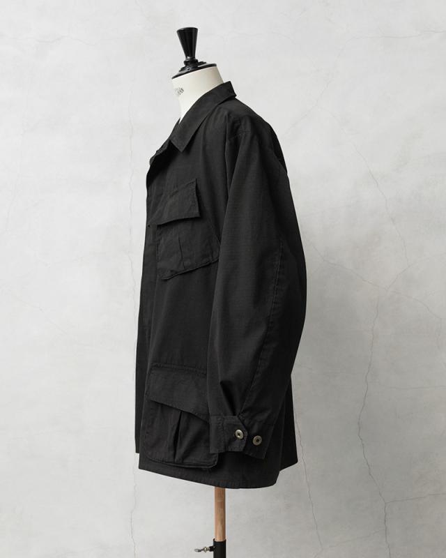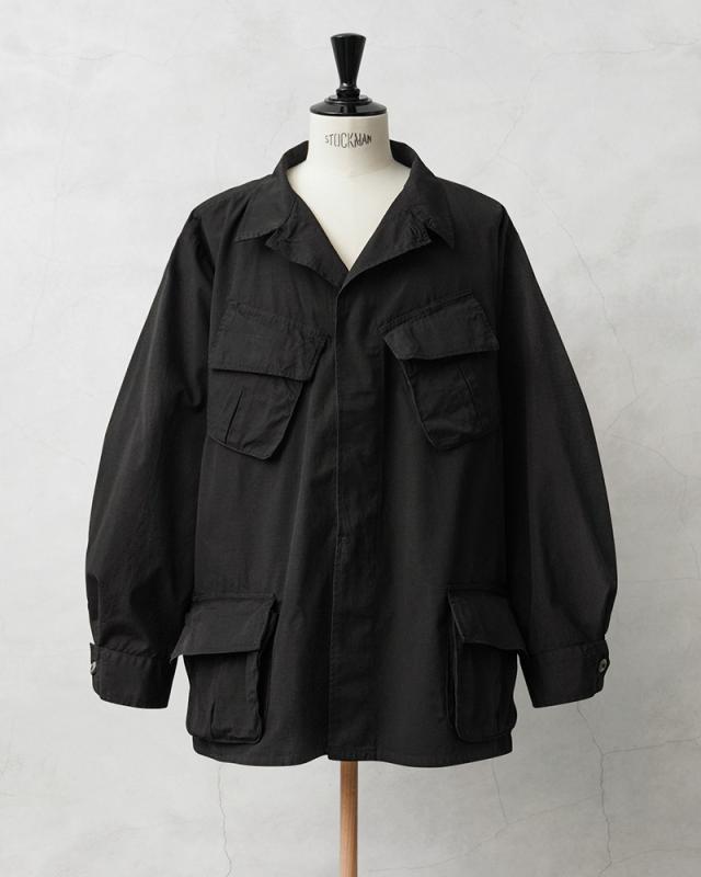 米軍の有名なジャングルファティーグジャケットが大変希少な新品デッドストックで入荷しました!しかも!この入手困難な未使用デッドストックを贅沢にBLACK染めを施しました!限られた枚数ではありますが、惜しげもなく染め上げられたその表情は圧倒的な存在感を放っています。耐久性を保ちながら軽量化を追求された機能的なU.S.ARMYの名品です。コレクターズアイテムとしても価値のあるジャケットは本物にしか出せない雰囲気を醸し出しています。未使用デッドストックでこのサイズが発見できることはこの先無いかもしれません!