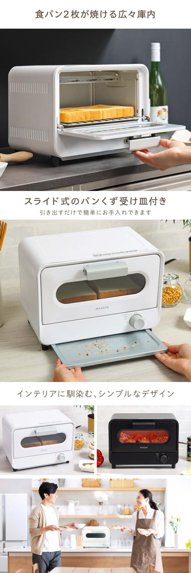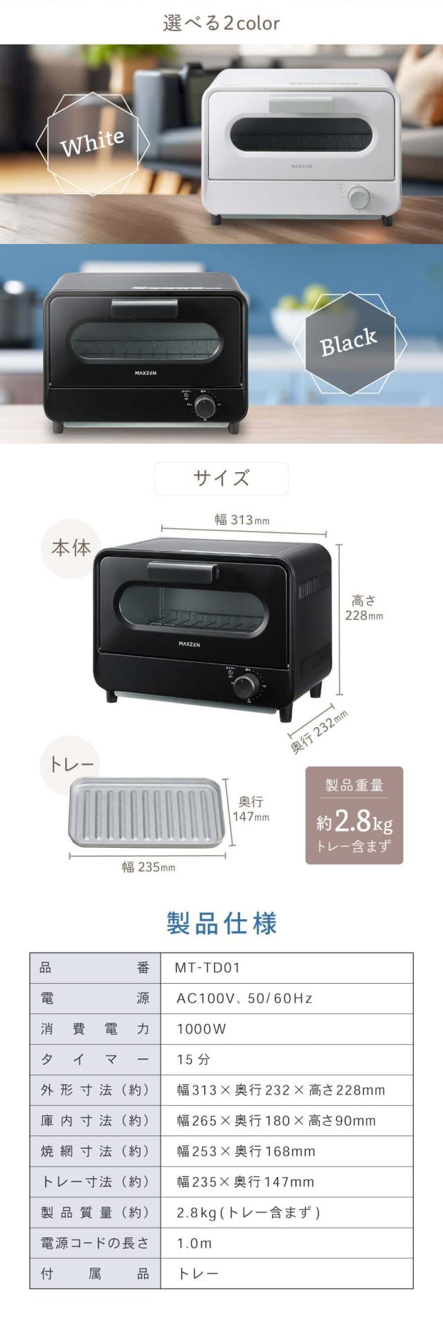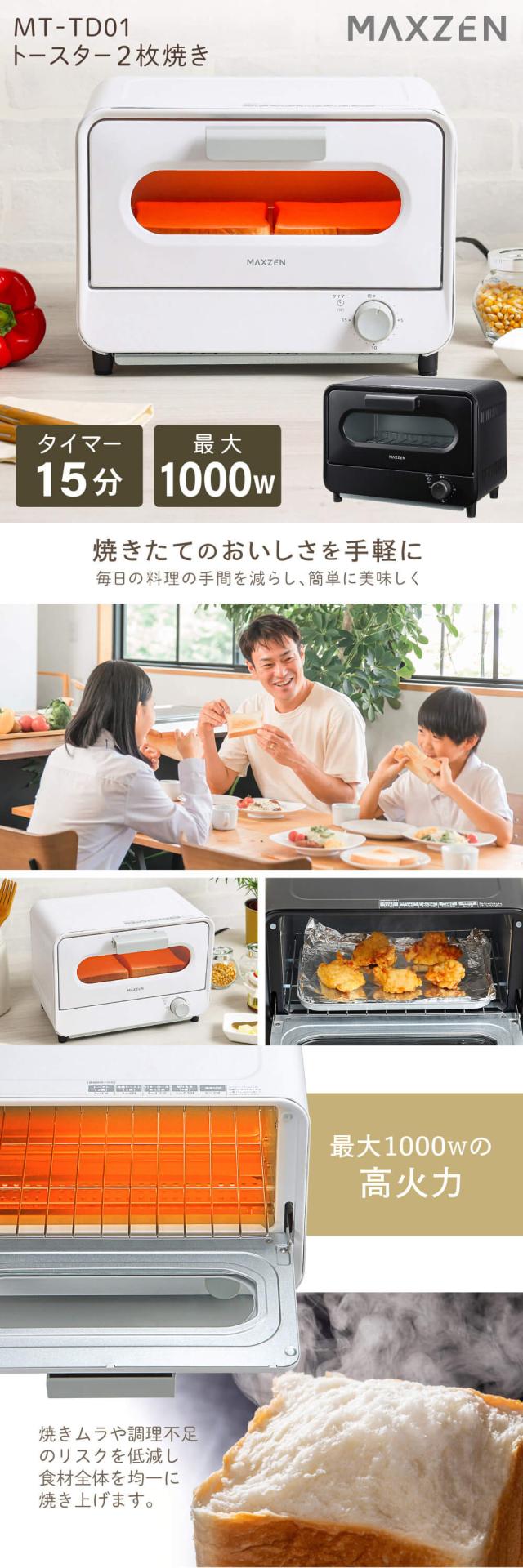 【期間限定ポイント5倍 1/6 10時まで】 トースター オーブントースター オーブン シンプル 2枚焼き トースト パン焼き機 タイマー付き 受け皿付き パンくずトレー付き 一人暮らし お手入れ簡単 朝食 おしゃれ オシャレ MT-TD01-BK マクスゼン