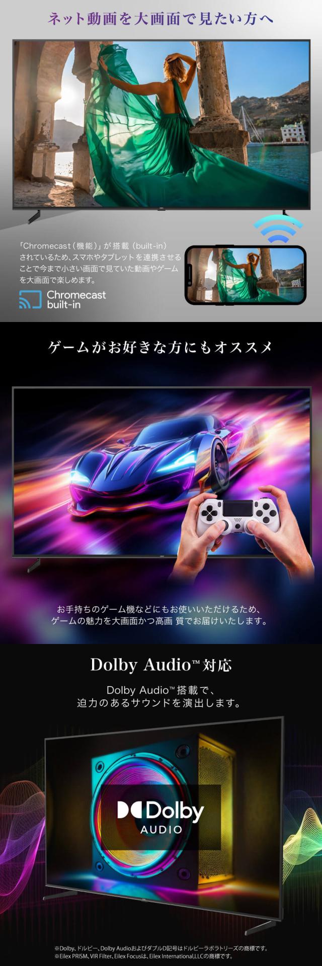 Dolby Audio搭載で、迫力のあるサウンドを演出します。