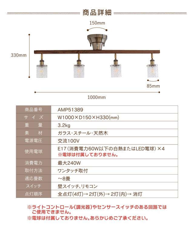 【使用電球】E17(消費電力60W以下の白熱またはLED電球)×4