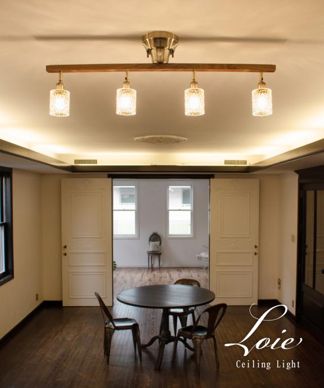 【Ampoule】 シーリングライト 照明 おしゃれ 4灯 ガラス シャンデリア リビング ウッド 天然木 ダイニング 寝室 リモコン ラグジュアリー カフェ アンティーク クラシック エレガント ナチュラル 照明器具 天井照明 間接照明 8畳 ゴールド 高級 E17 LED Loie ロイエ 4B