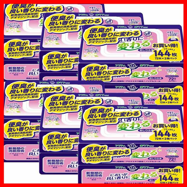 【6個セット】おしりふき 介護用品 消臭 アクティ においが良い香りに変わる おしりふき 72枚×2個パック アクティ おしりふき 濡れタオル ぬれタオル 介護用 良い香りに変わる 大容量 ノンアルコール ウェットシート 20×18cm