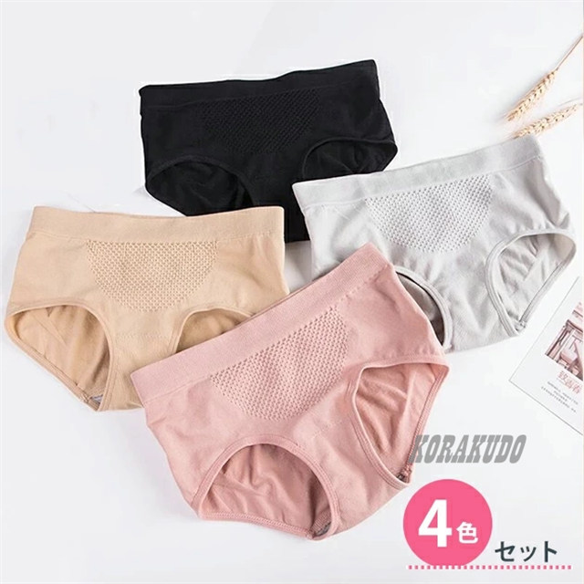 [2点目半額→クーポン利用で]【4枚セット】子宮温活 美ラインショーツ ショーツ ヒップアップ 立体 ショーツ 中身が見える ブラック ベージュ ピンク グレー レディース 下着 パンティー ショーツ ウエストショーツ シンプル 3D ウエスト引き締め 宮温め ヒップアップ