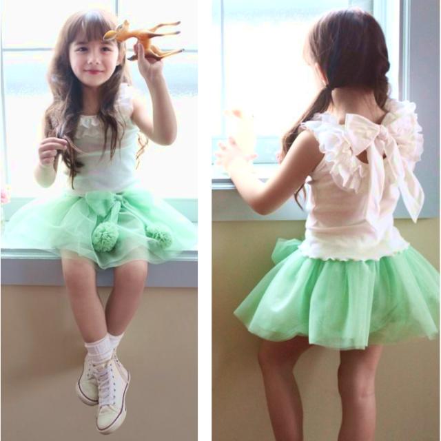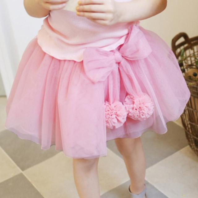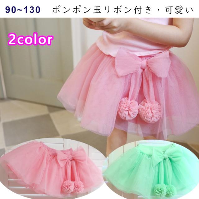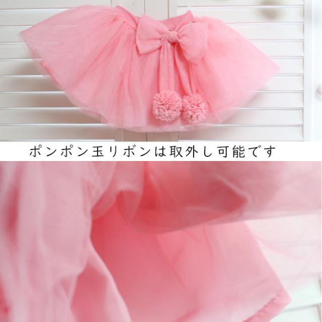 ポンポン玉リボン付きの可愛いシーフォンチュチュスカート