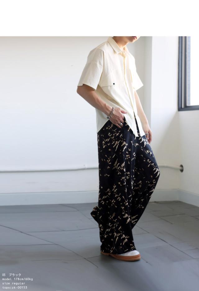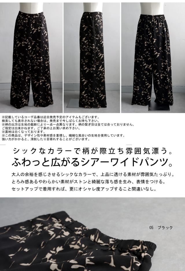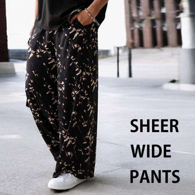 zk-00159z アート柄 ニュアンス柄 柄 柄ボトム 柄パンツ シアー 透け ワイド 長ズボン 高級感 ゆったり きれいめ 上品 ロングパンツ イージーパンツ 総柄 前フラット