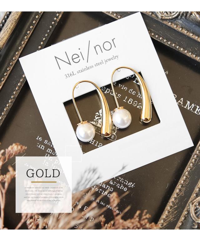ピアス お肌に優しい つけっぱなしok サージカルステンレス 316L メンズ レディース ユニセックス 両耳用 ジェンダーレス ファッションピアス アクセサリー シルバー ゴールド PVDコーティング Nei/nor ネイナー NnP-0073