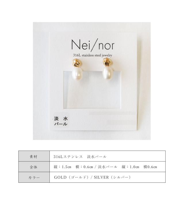 ピアス お肌に優しい つけっぱなしok サージカルステンレス 316L メンズ レディース ユニセックス 両耳用 ジェンダーレス ファッションピアス アクセサリー シルバー ゴールド PVDコーティング Nei/nor ネイナー NnP-0090