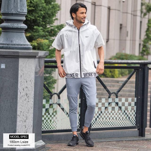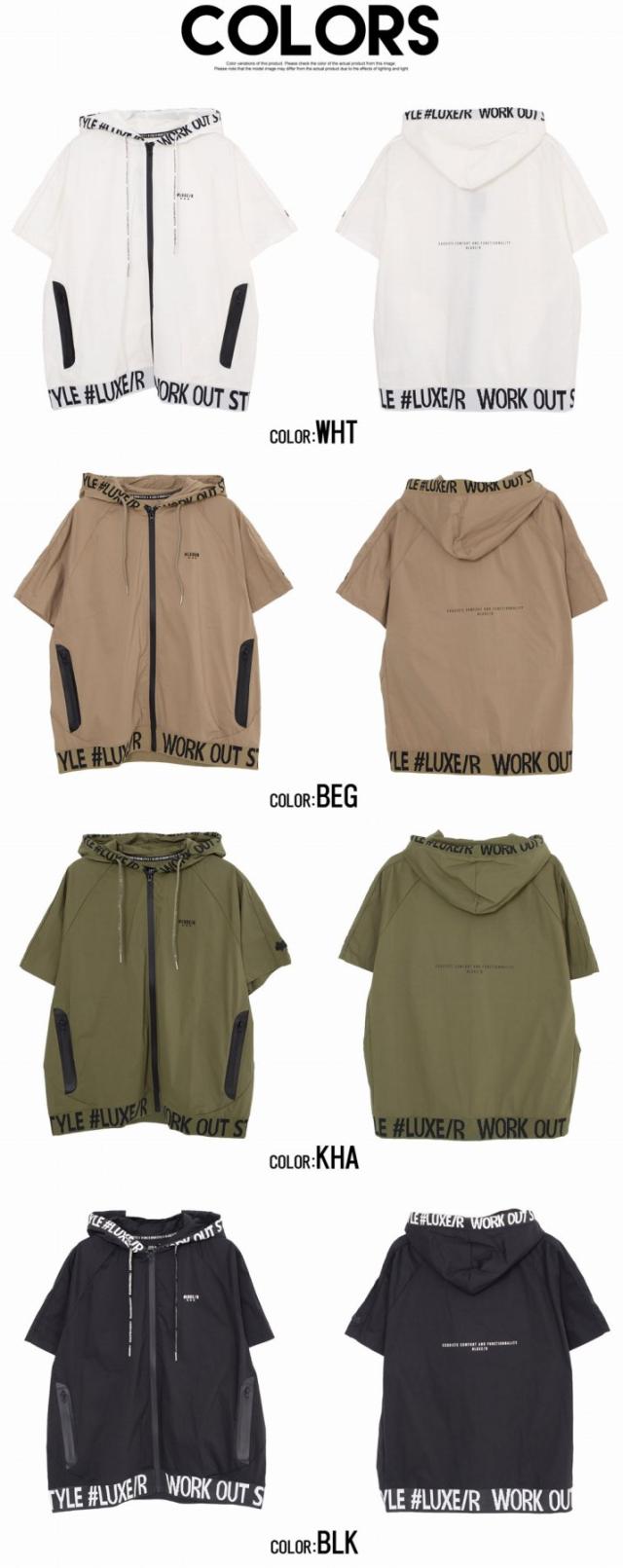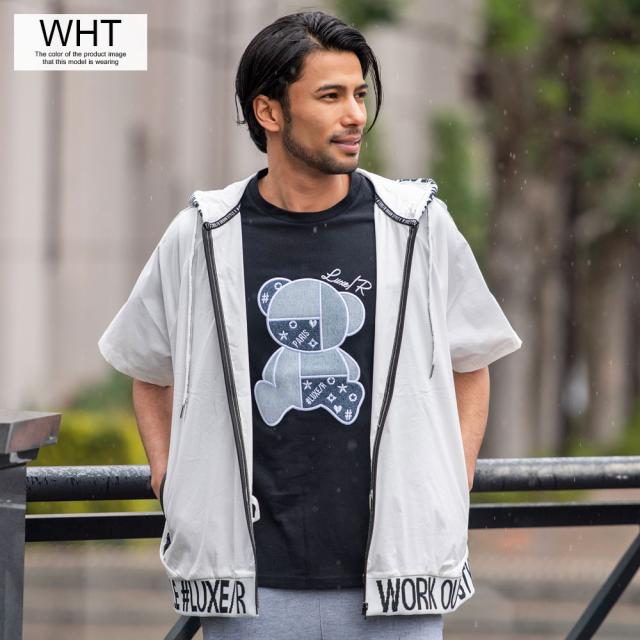 パーカー メンズ 半袖 ブランド おしゃれジップパーカー ロゴ ワンポイント ストレッチ 伸縮性 ゴルフ ジム ルームウェア 部屋着 ホワイト ベージュ カーキ ブラック 白 黒 M L XL LL 春 夏 秋 LUXE R 大人 カジュアル メンズファッション 即日発送 [45664]