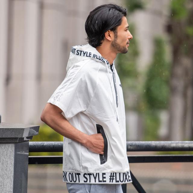SILVER BULLET(シルバーバレット)にLUXE/R【ラグジュ】ストレッチ布帛半袖ZIPパーカーが入荷しました。フロントにワンポイントとフード、袖部分にもロゴをあしらい大人の遊び心溢れるデザインに仕上げたジップパーカー。