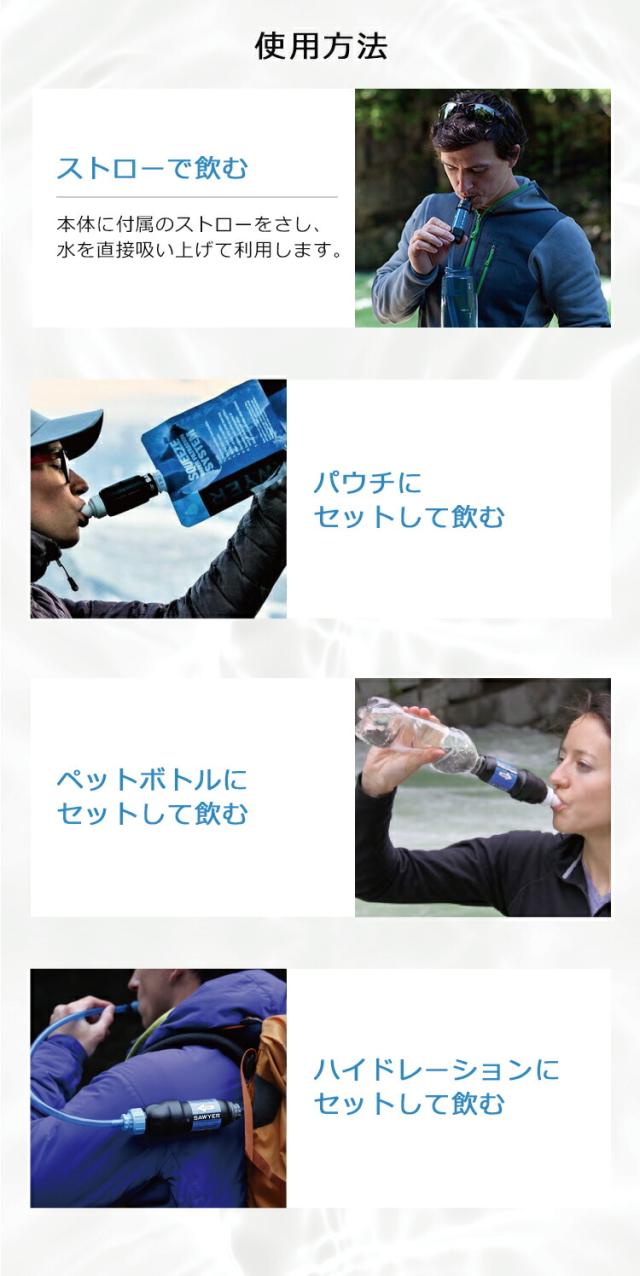 ※ ソーヤースクィーズフィルターは、2012年にアメリカ「バックパッカーマガジン」誌にてエディターズチョイスに選出されました。
