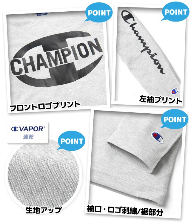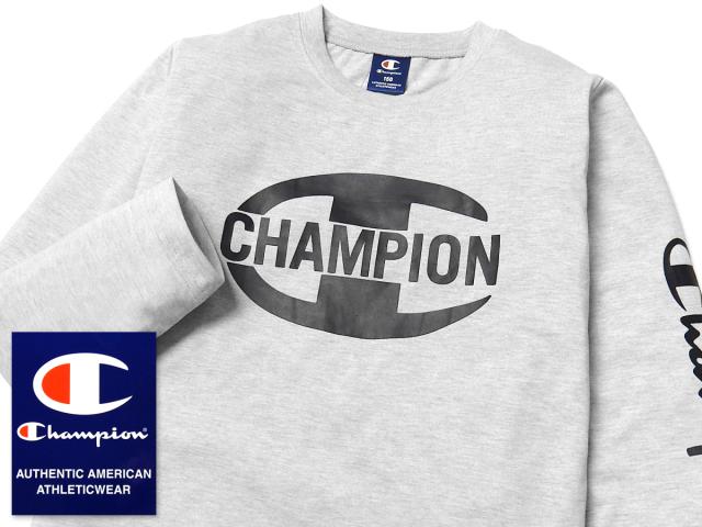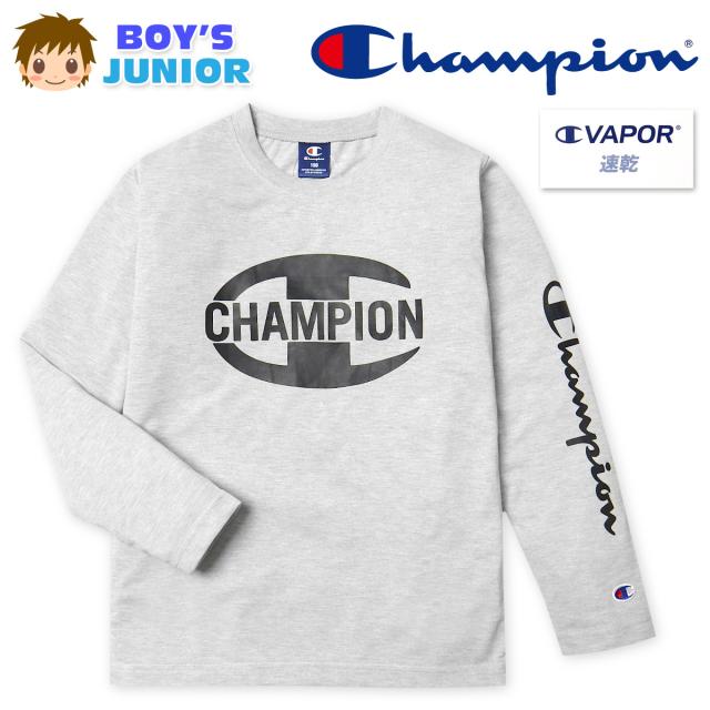【送料無料】男児 ジュニア 吸汗速乾 長袖 Tシャツ Champion/チャンピオン 天竺 クルーネック ロゴプリント 刺繍 子供服 男の子 140cm 150cm 160cm td-0746a-gy【メール便対応】