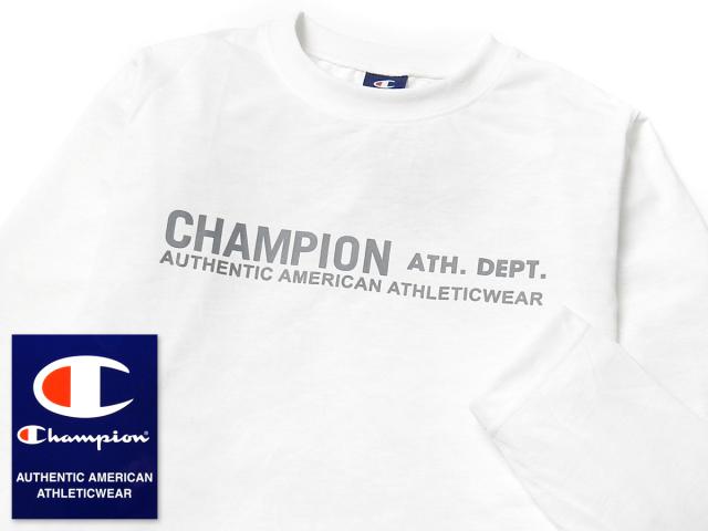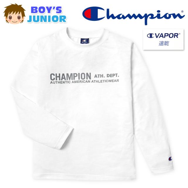 【送料無料】男児 ジュニア 吸汗速乾 長袖 Tシャツ Champion/チャンピオン 天竺 クルーネック ロゴプリント 刺繍 子供服 男の子 140cm 150cm 160cm td-0747a-wt【メール便対応】
