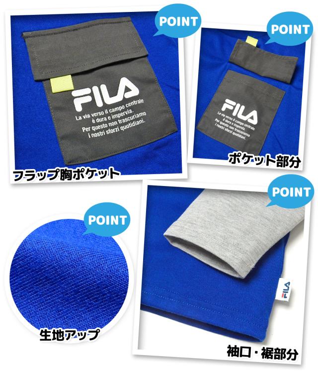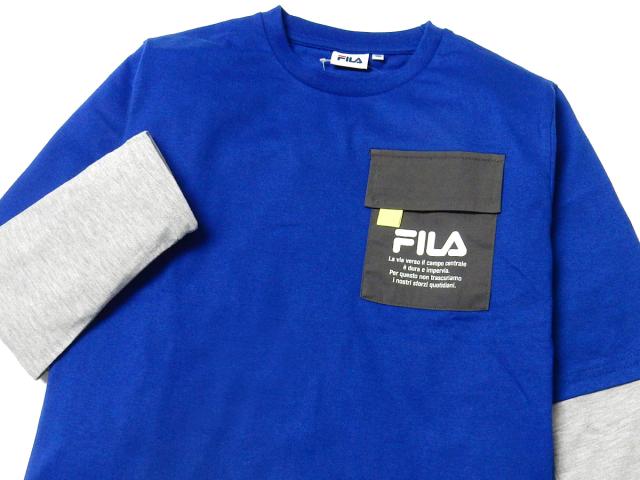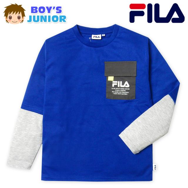 【送料無料】男児 ジュニア 長袖 Tシャツ FILA/フィラ レイヤード風 綿混 フラップ胸ポケット 子供服 男の子 140cm 150cm 160cm iw-1042a-bl【メール便対応】