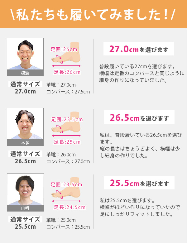 取り扱いサイズ:6.5[25cm] 7[25.5cm] 7.5[26cm] 8[26.5cm] 8.5[27cm] 9.5[28cm] 10.5[29cm] 11.5[30cm]