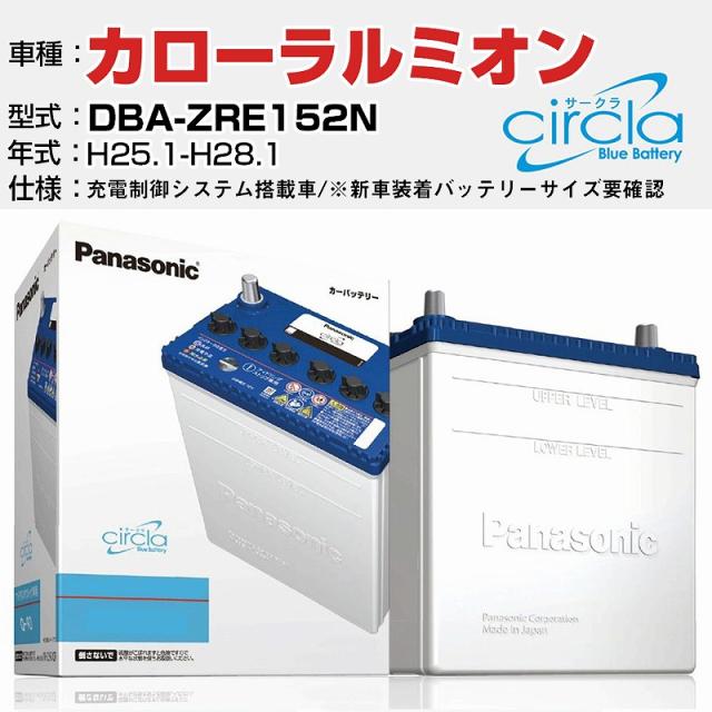 トヨタ カローラルミオン DBA-ZRE152N/H25.1-H28.1 1800cc ※新車装着バッテリーサイズ要確認 充電制御システム搭載車 N-Q90/CR 適合参考 circla サークラ アイドリングストップ車専用 panasonic 国産 カーバッテリー カーメンテナンス 整備 自動車用品【H04006】