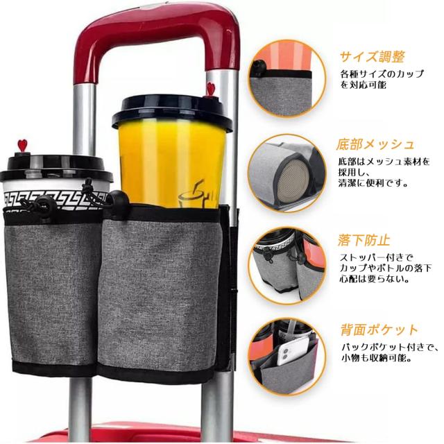 スーツケース用 ボトルホルダー スーツケース 小物入れ ホルダー ポケット付き 出張用 水筒入れ 水筒 ドリンクホルダー 飲み物ホルダー 旅行 機内持ち込み スーツケース キャリーケース 旅行ケース カップホルダー 簡単装着