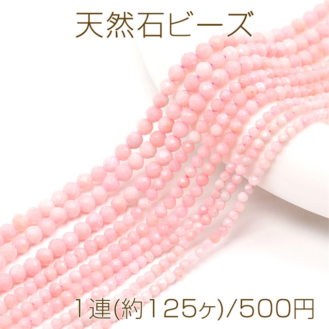 天然石ビーズ 連売り ピンクオパール ラウンドカット 通し穴あり 3mm 1連(約125ヶ)