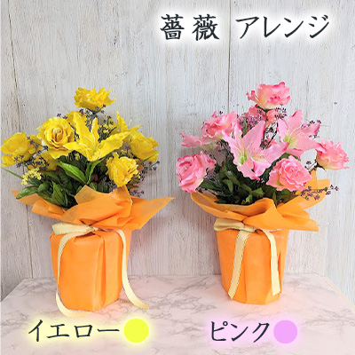 ● 薔薇 アレンジ イエロー/ピンク (kg-23) 造花 人工 観葉植物 フェイクグリーン 送料無料 94274