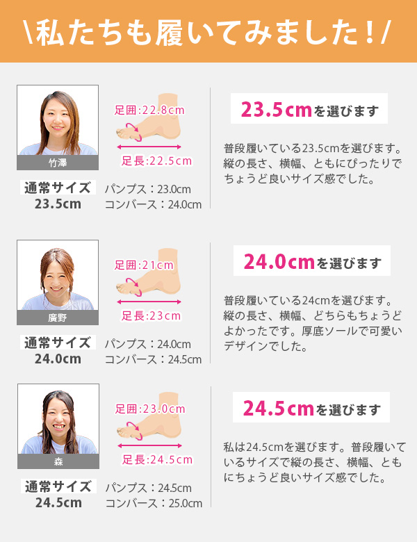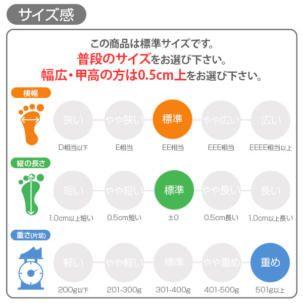 甲高、幅広の方→「0.5cm大きめ」