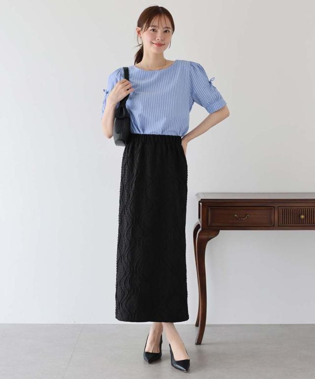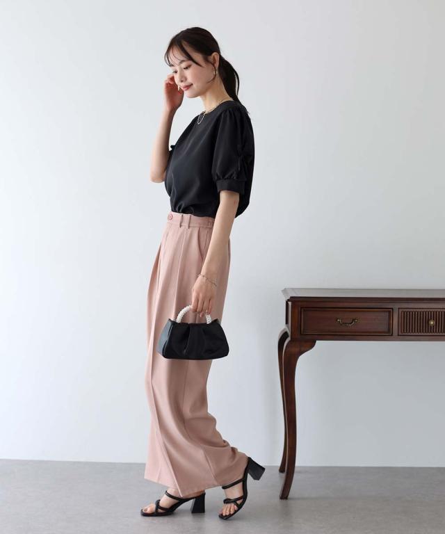 身頃はシンプルなので、アクセサリーなどでアクセントをつけると華やかで女性らしい着こなしが楽しめます。